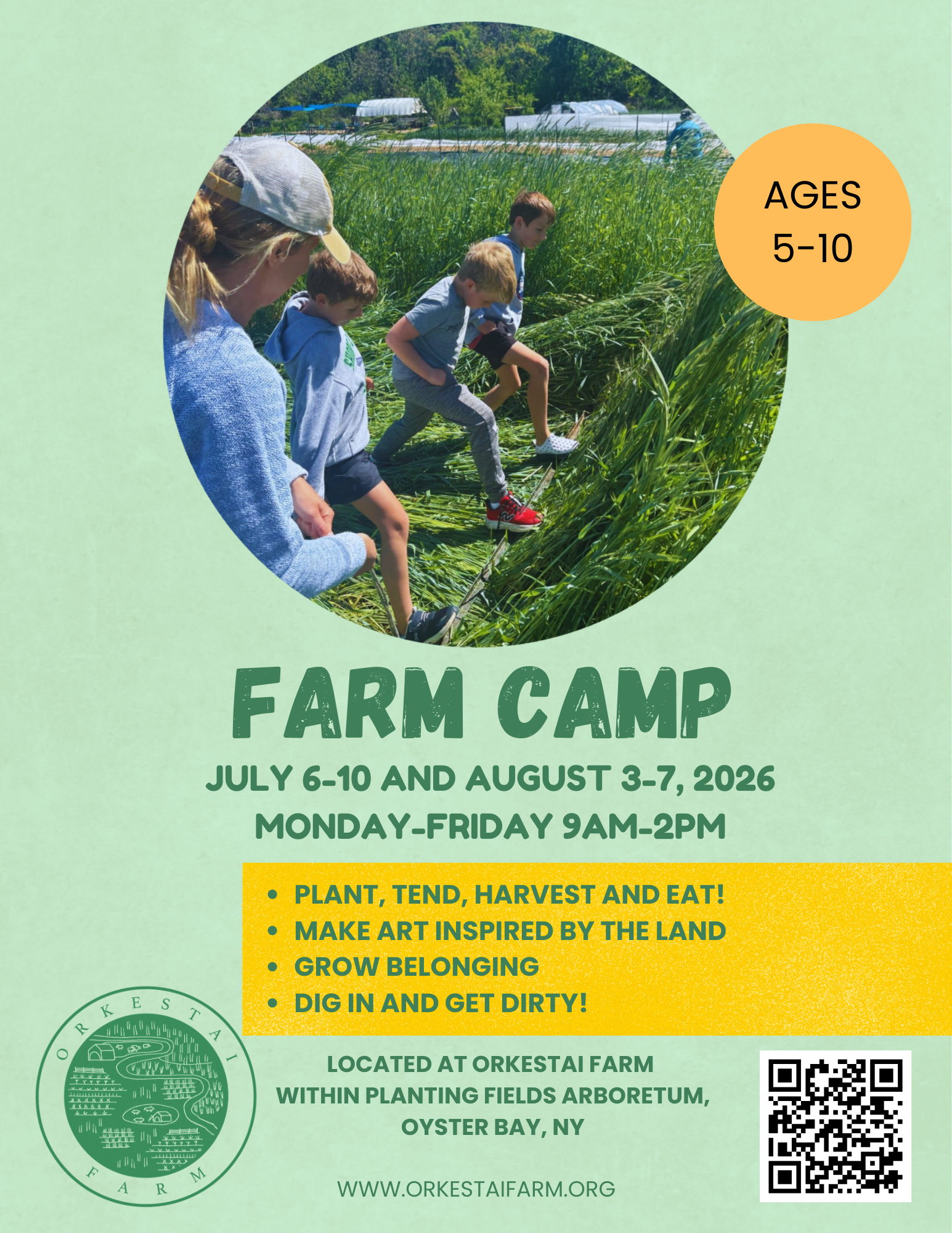 Farm Camp is an inclusive farm and arts experience for children ages 5-10 years old. Children will be playfully immersed in soil, sun, and stem through digging into life on our human scale, no-till organic farm. They will tend, harvest, and prepare the vegetables and fruits they help grow, as well as find expression through creative arts practices that weave organically into farm-life. This immersive place-based experience will support sensory exploration, buoy wonder, and cultivate a sense of belonging to our shared Earth.